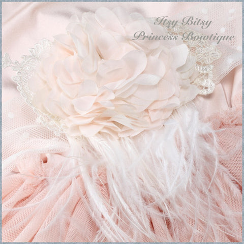 This pretty dress is perfect for a flower girl's dress or just a pretty party dress. Very soft and has layers of soft mesh tulle skirt. Sash belt is included.